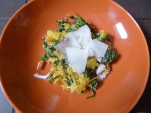 Roasted Spaghetti Squash, Pancetta and Spinach with Shaved Goat’s Cheese Recipe