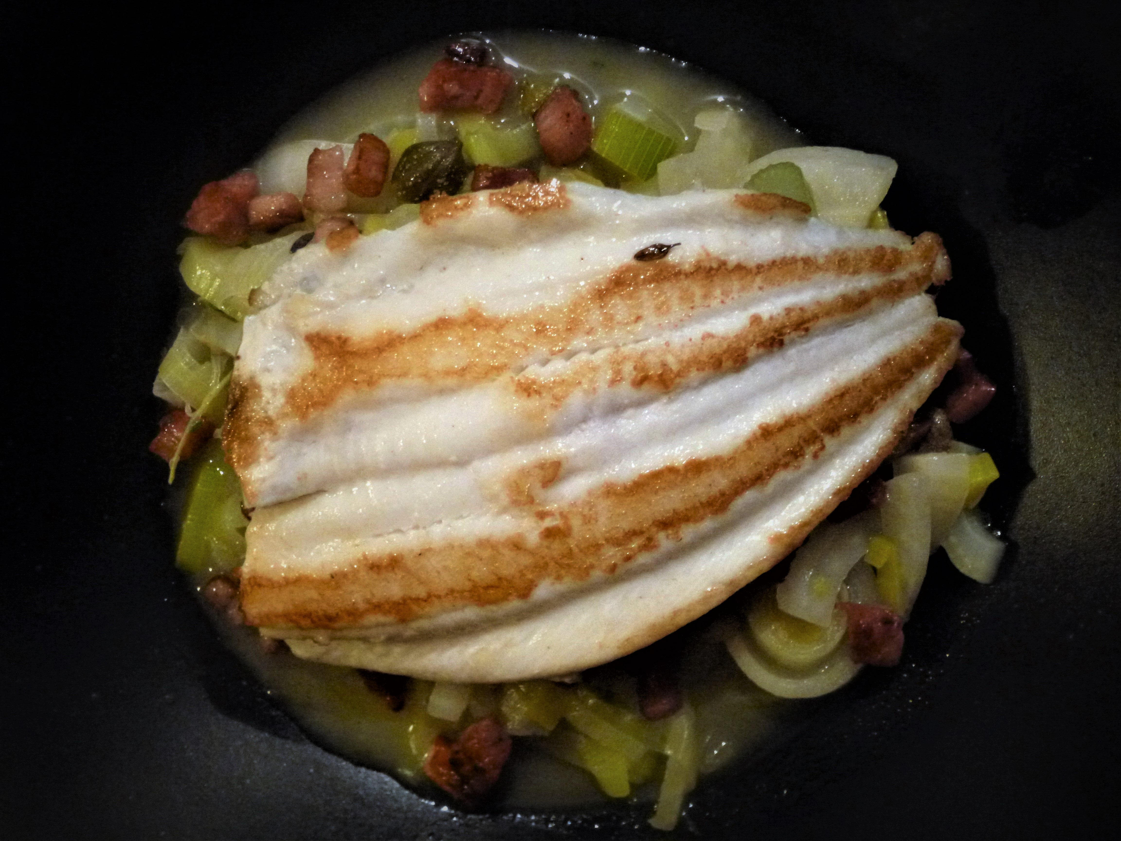Pan Fried Lemon Sole on a Fennel, Pancetta and Leek Broth Recipe