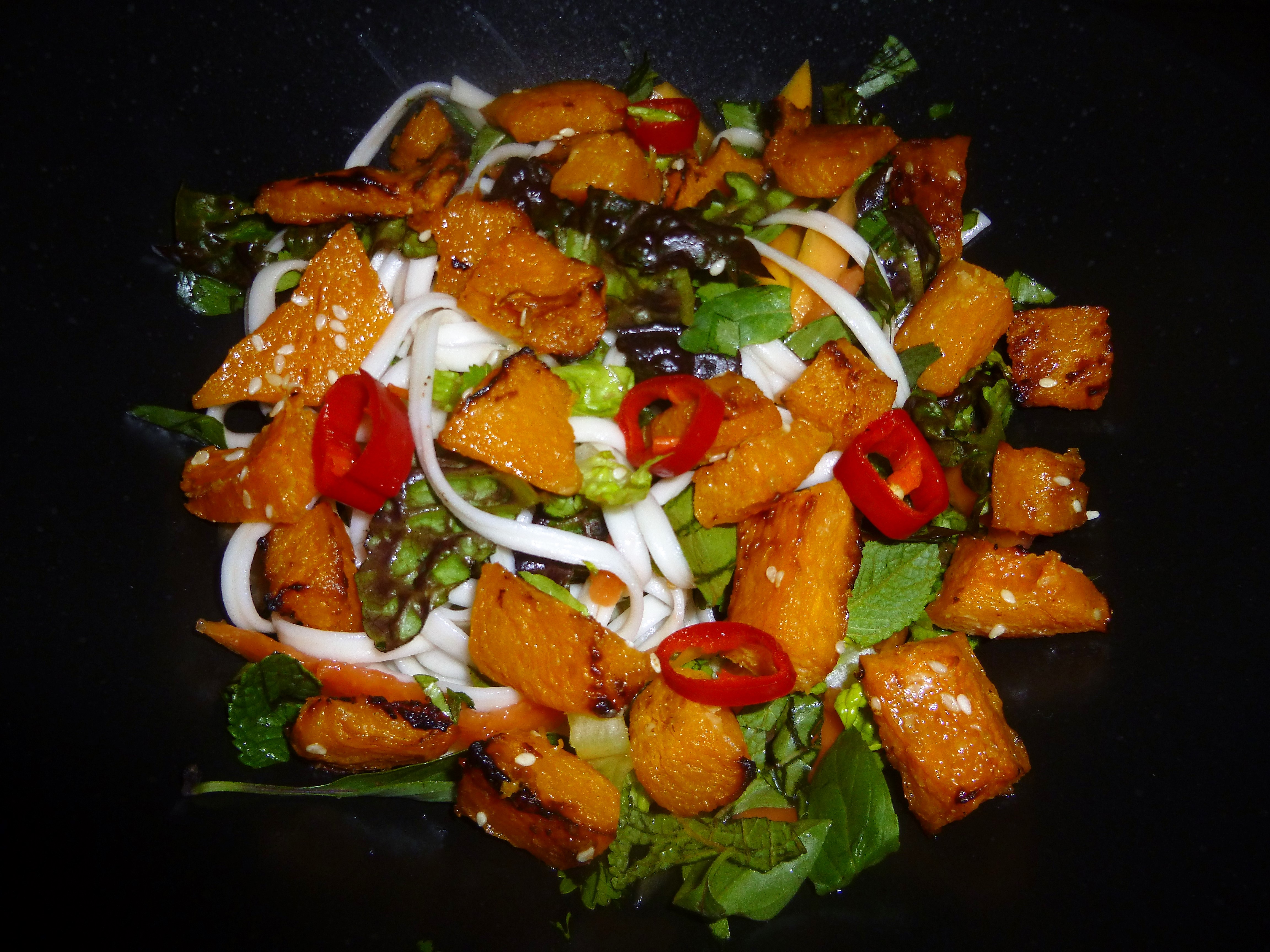 Roasted Miso Squash, Papaya and Noddle Salad Recipe