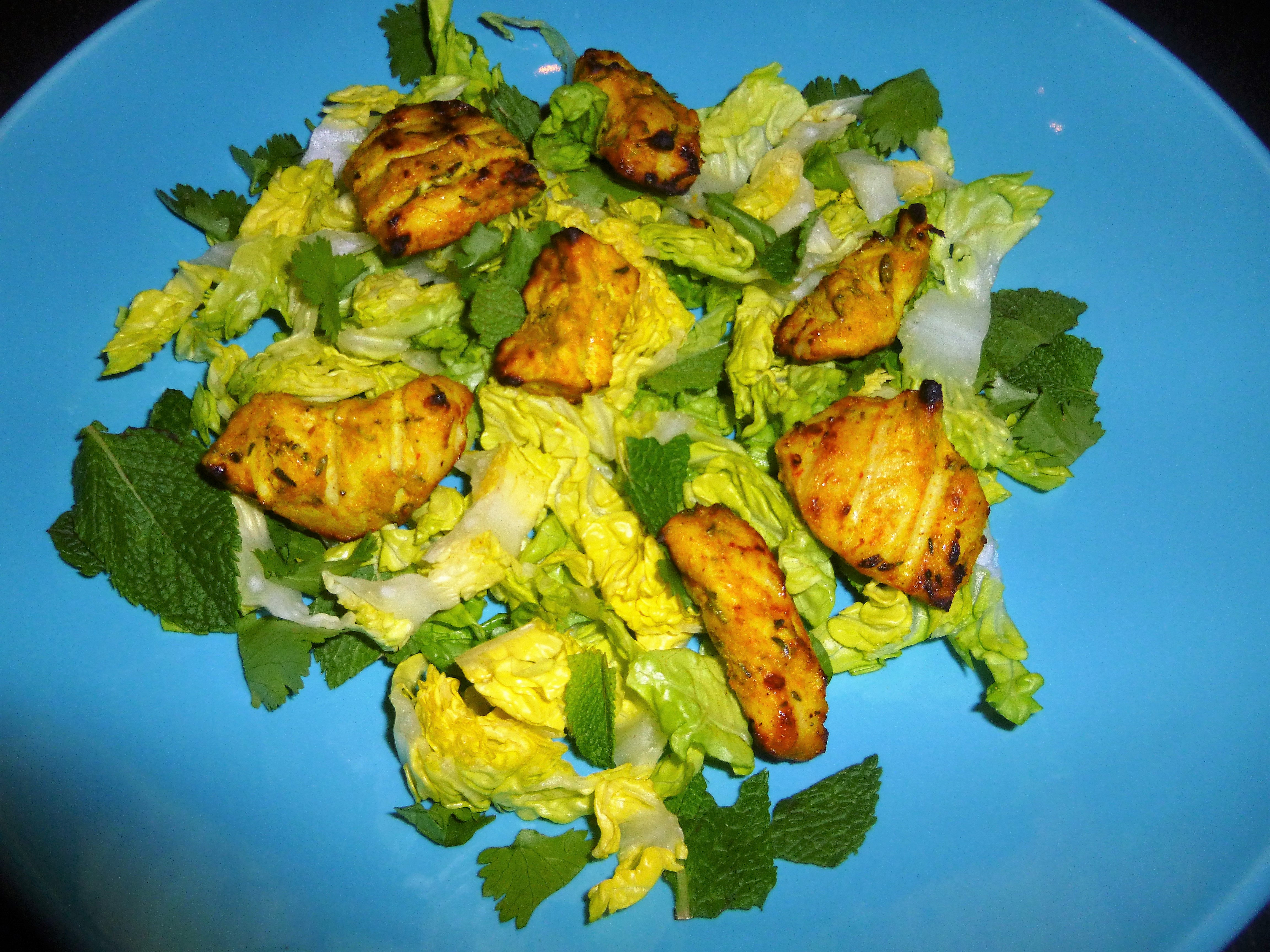 Tandoori Chicken and Tofu on a Herb Salad with a Yoghurt and Mango Dressing Recipe