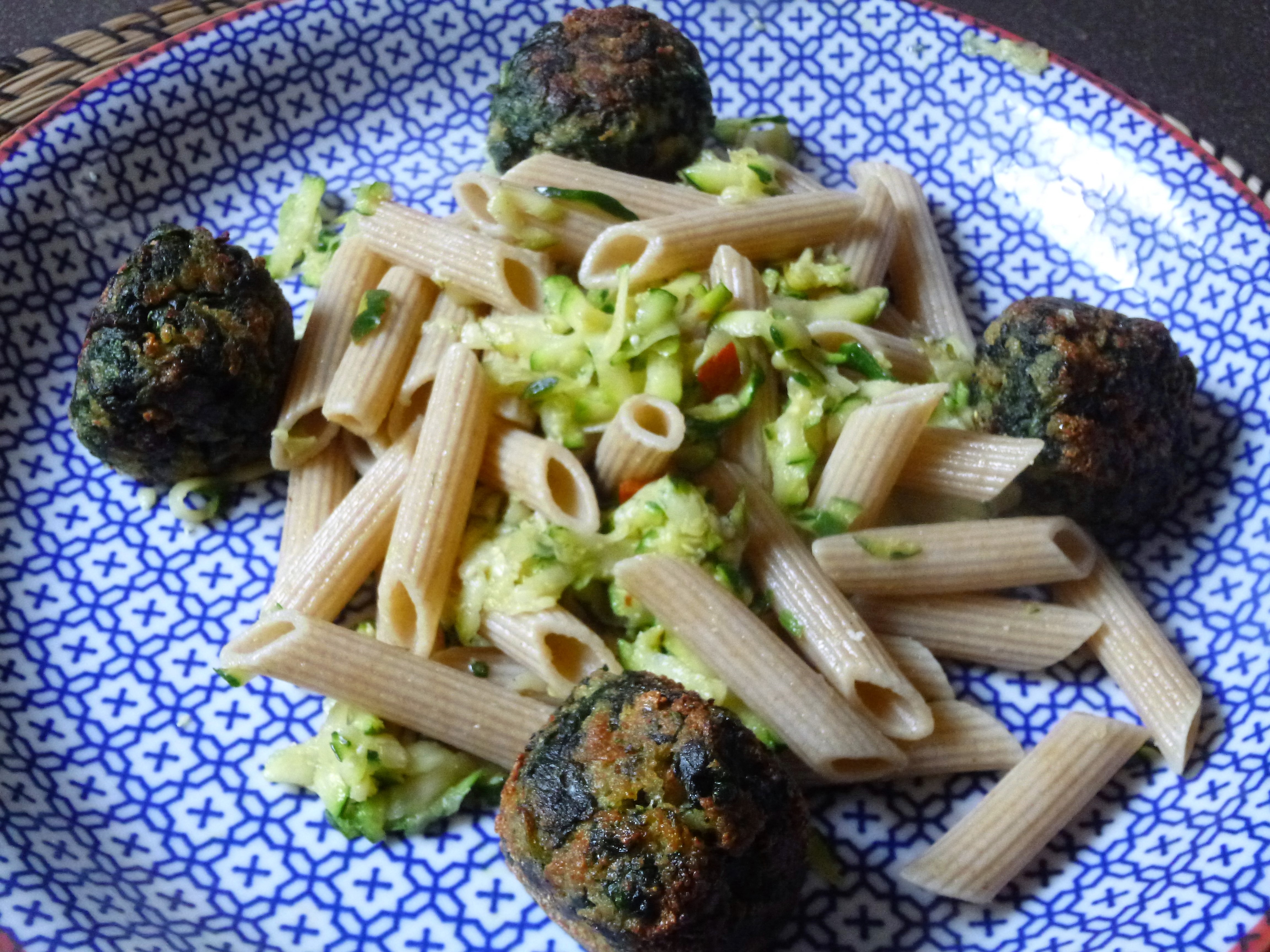 Whole Wheat Pasta with Courgette Sauce and Spinach Balls Recipe