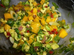 Hot Smoked Salmon with a Mango and Avocado Salsa and a Tamarind and Mango Dressing Recipe