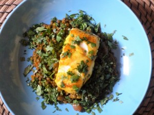 Curried Hake on Spiced Lentils Recipe