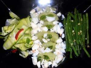 Crab, Grapefruit and Garlic Bean Salad with Lightly Pickled Courgette and a Miso Dressing Recipe