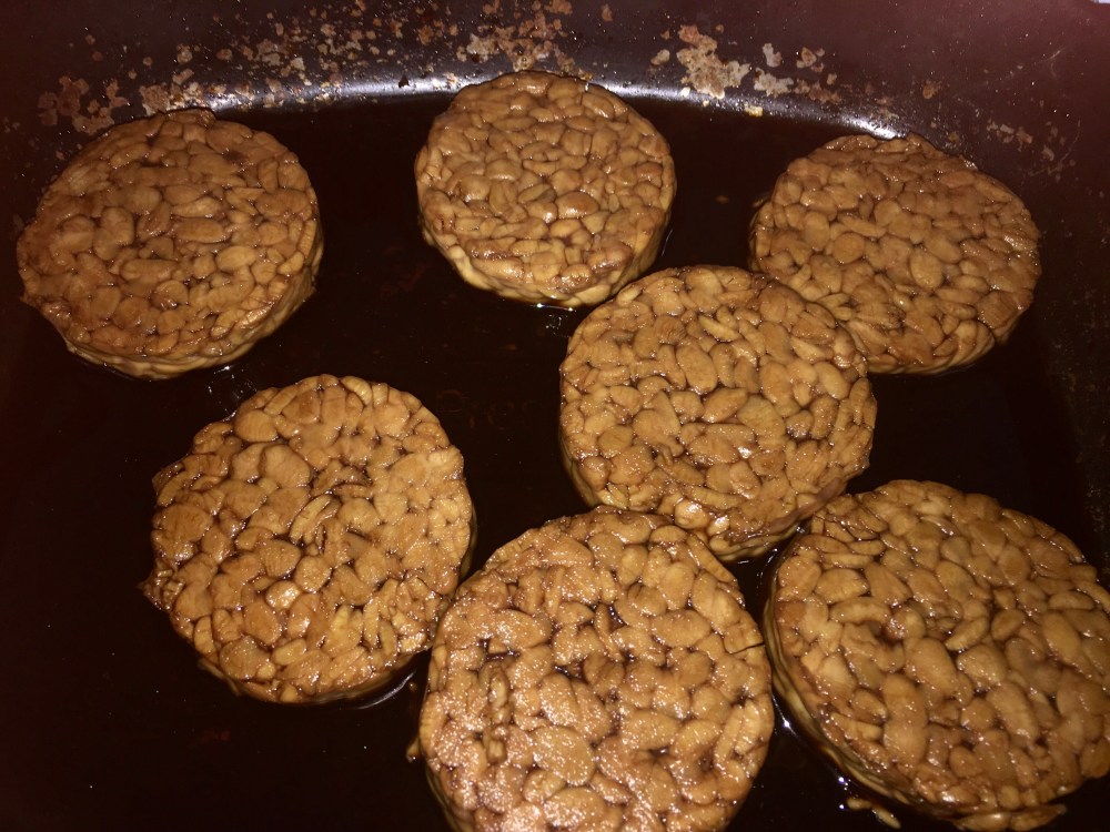 - Fill a wok with about an inch of water. Place the tempeh in a steaming basket and steam for 10 mins. Place the teriyaki and lime juice in a shallow dish. Add the tempeh and marinade for at least an hour I kept turning mine every 10 minutes. Once ready to cook. Het oven or air fryer to 180 degrees fan. Spray the tempeh slices with cooking spray and cook for 15 minutes