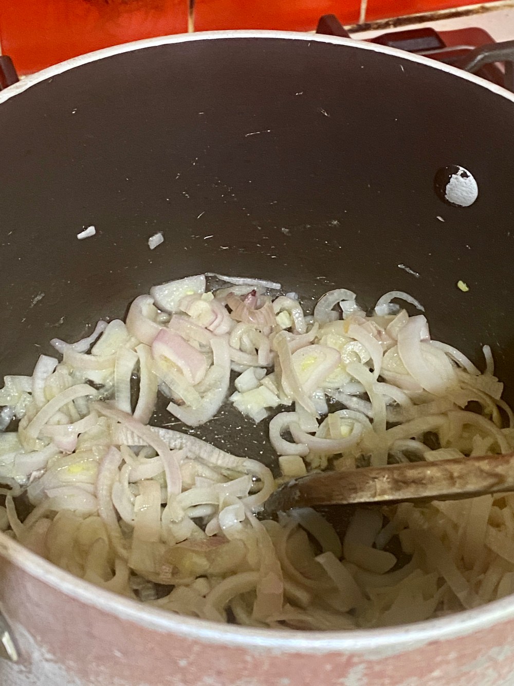 - Melt the ghee in a saucepan. Add the shallots and cook for 5 minutes until they are soft and translucent.