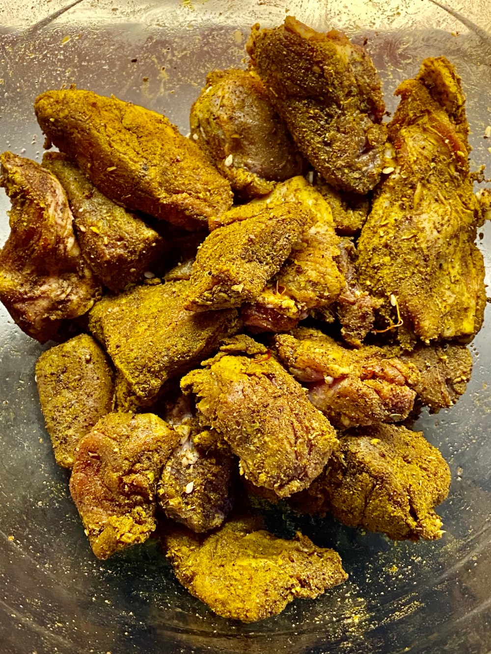 1. Make sure that the spices are rubbed into the meat completely as this will enhance the flavour.Cover the bowl and refrigerate if possible