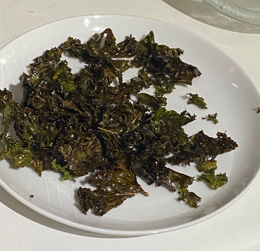 - If you are making kale chips and crispy spring onions, add them to a bowl with a tbsp of oil, massage until fully coated. I cooked mine in the air fryer for 8 minutes on a 190 degrees (you can do the same in an oven at 220 degrees fan)