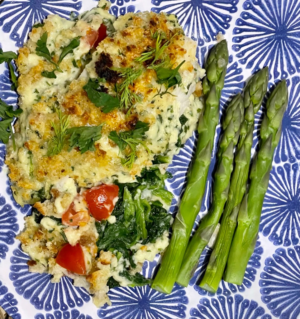 This is quite an old school recipe but I had it in Egypt of all places and I forgot how nice it was. I used cod in my recipe but any meaty fish will be fine. I put a spin on it by using parsley sauce, I made a batch as I had a bag of parsley to use up as I hate waste I also do this with bread going out of date I just blitz it into breadcrumbs put it in a bag and freeze it so I have a handful of breadcrumbs and a potinstantly This dish was so comforting simple and tasty.