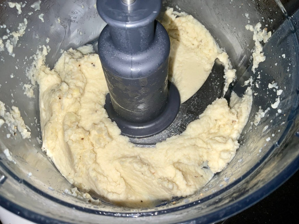 - Add the cooked florets into a food processor along with the rest of the ingredients and blitz until nice and smooth.