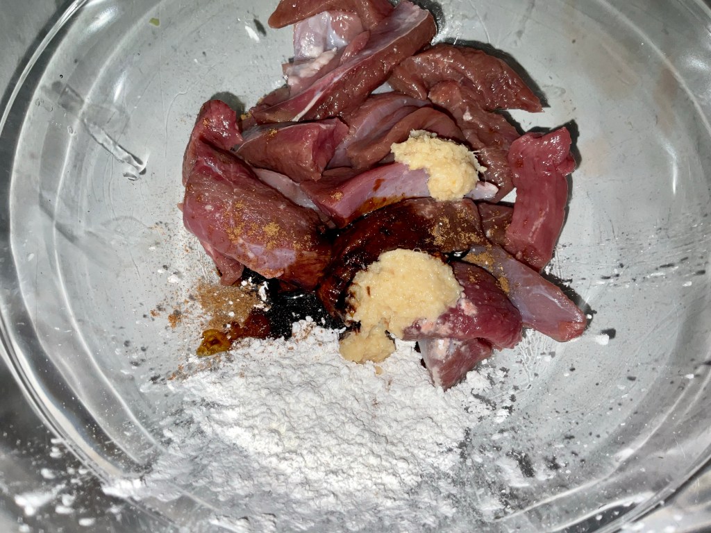 - Add the first 5 ingredients into a bowl. Give it a good mix so the duck strips are coated. Cover and pop in the fridge for at least 30 minutes.