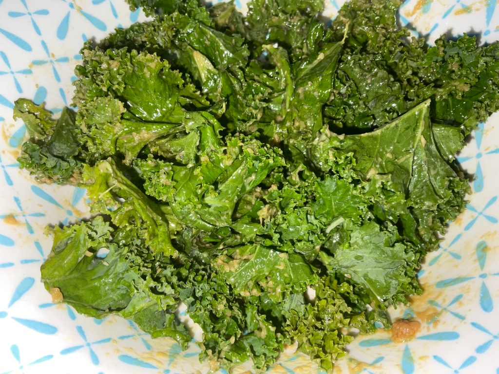 - Add the dressing to the bowl with the salad. Give it a good mix preferably with your hands so you can massage the kale making it softer in texture.