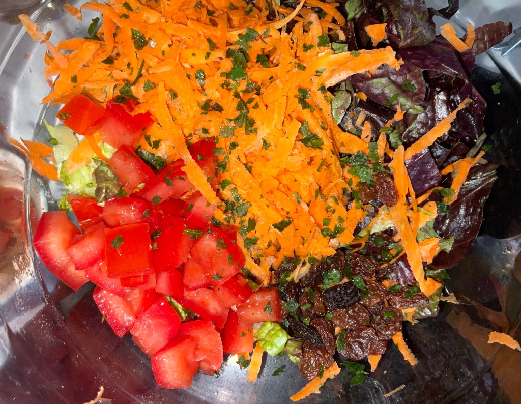 - Add the rest of the salad ingredients to a salad bowl, give it toss.