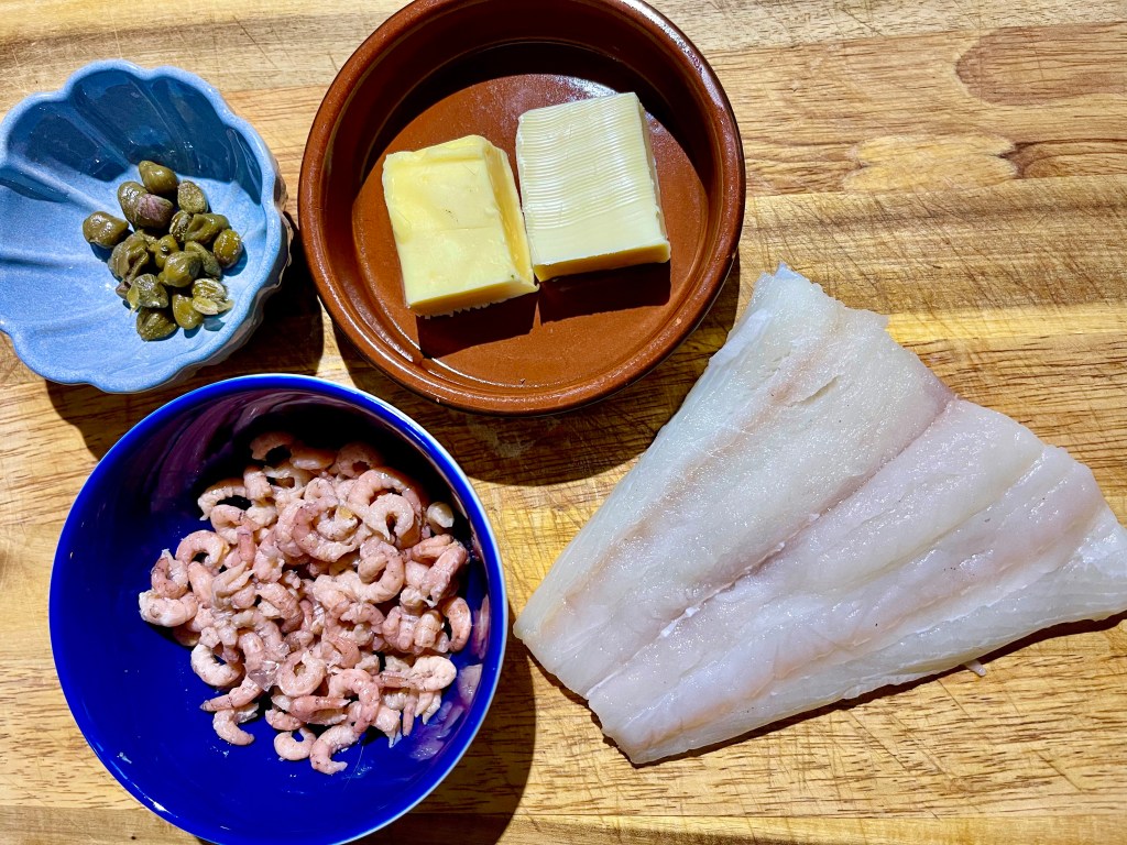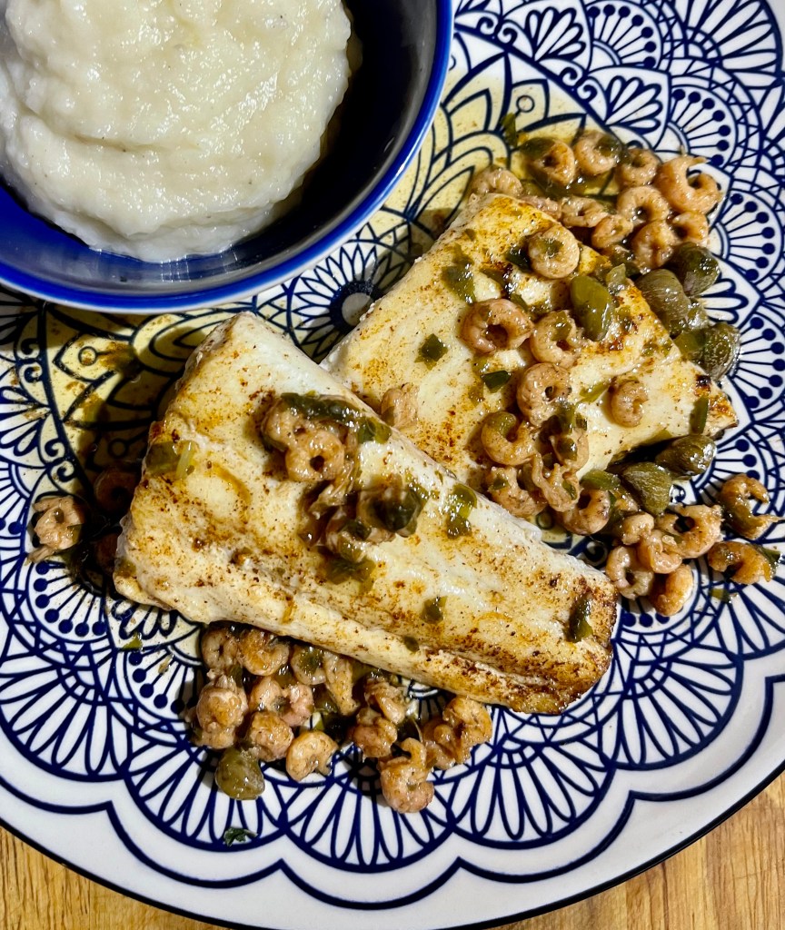 - In the same pan add the other half of butter and melt. Once melted, add the shrimp and cook for 30 seconds add in the capers and cook for a minute so the sauce will be hot. Taste to check the seasoning as you might not need any salt. Finish off with a squeeze of lemon.