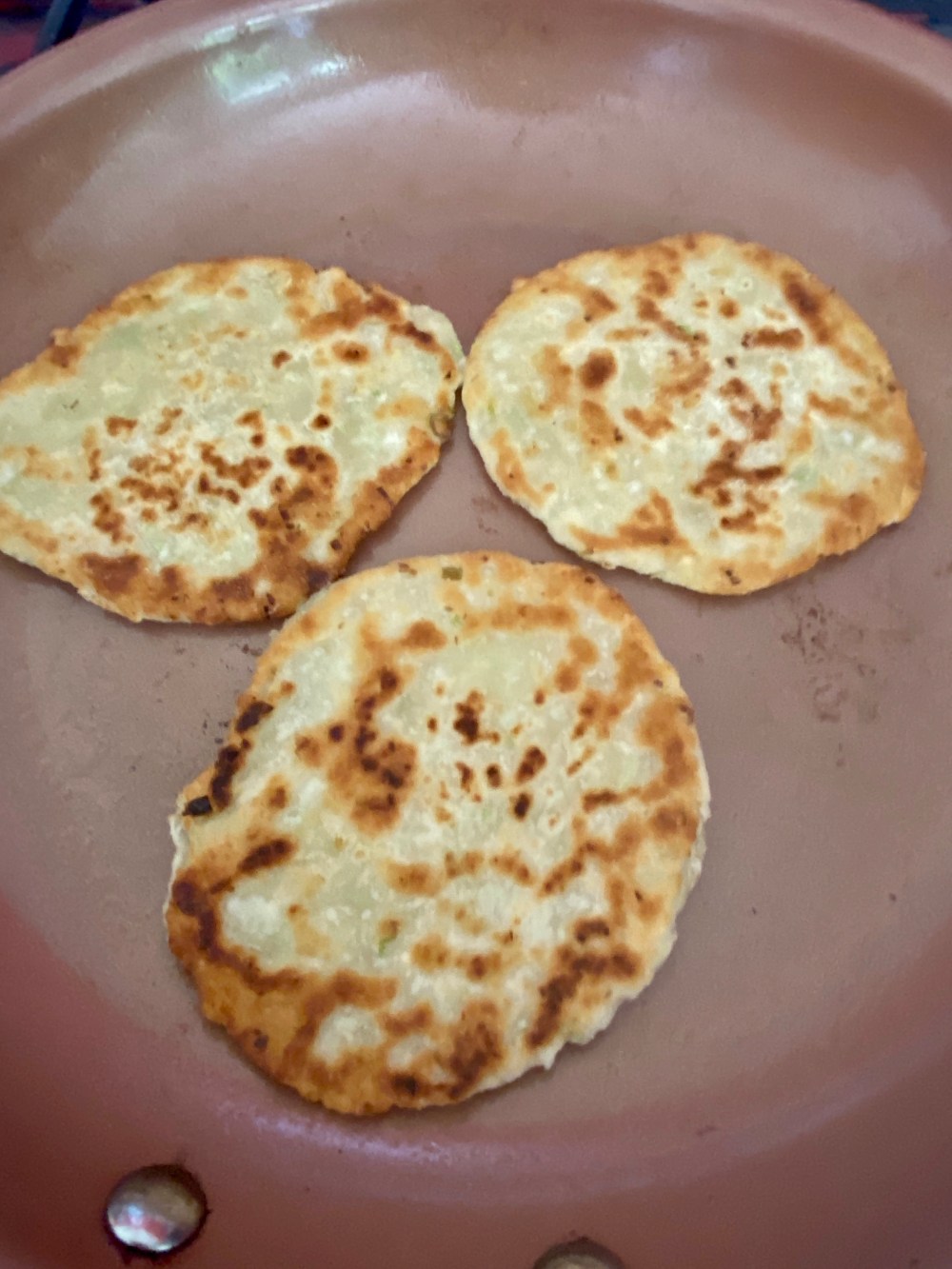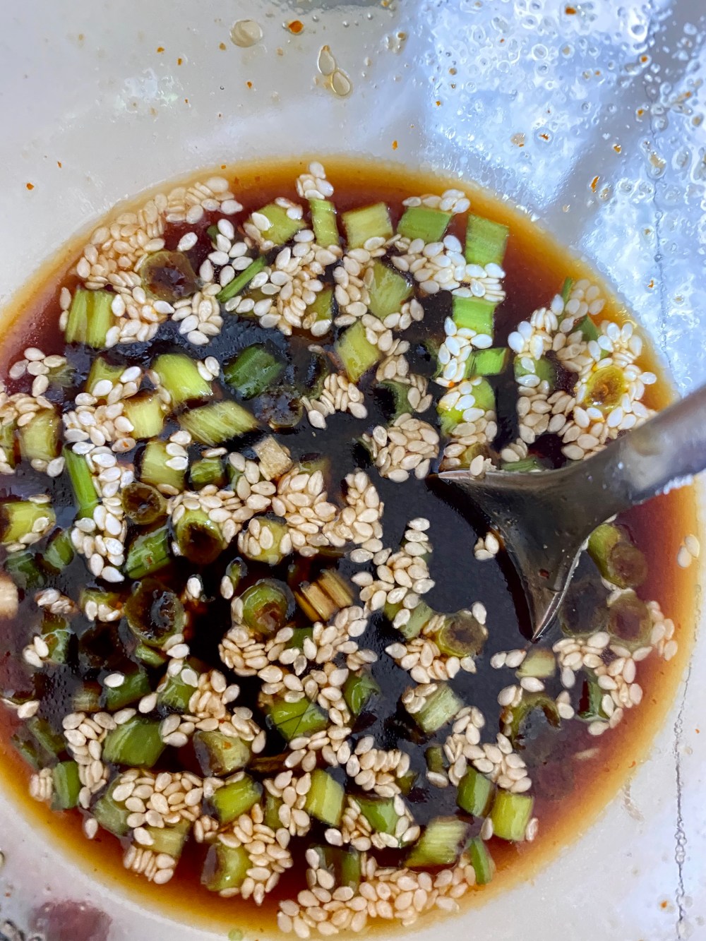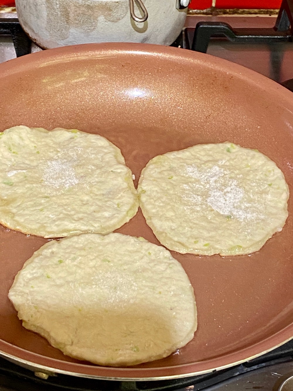 This is such a great way of using up spring onions, itโs quick easy and really tasty. I like my spring onions softened so rather than added them to the dough after youโve made it I add it straight away. Itโs traditional used using the green parts but I like it with the white parts too. Itโs really yummy and the dipping sauce finishes it off nicely. You can have it for breakfast lunch or as a side for dinner.