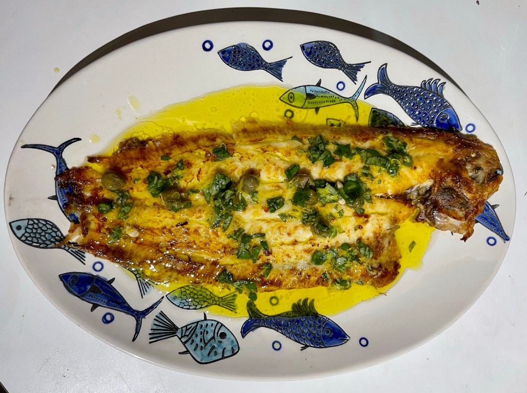 Whole Dover Sole with an Olive Oil, Caper, Lemon and Basil Dressing