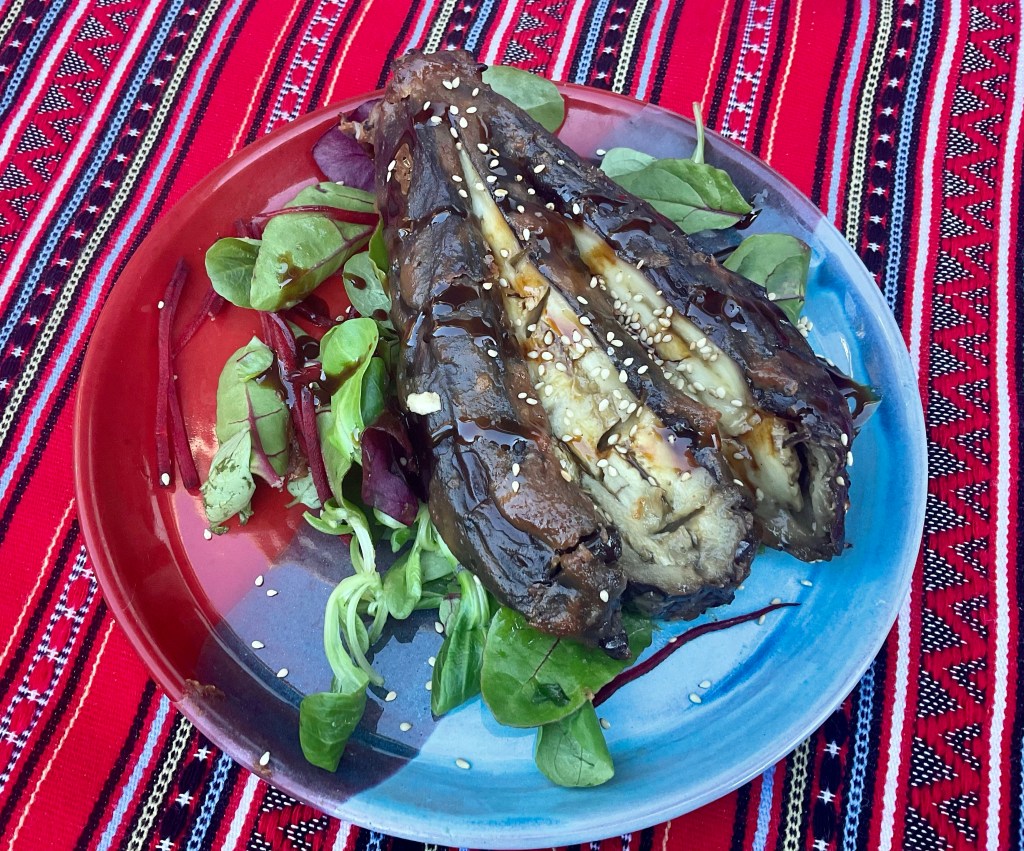 I think slow roasting an aubergine is the best way to cook them as it makes the flesh so juicy and tender. They can also take on flavours really well so and spices really whether it’s Middle Eastern, Indian. Mediterranean etc. I went Asia this time with tangy miso and tamarind all sweetened up with honey so it’s too sharp. The was delicious the skin had abit of chew on it and inside was delicious flesh. It really works adding the slits at the begging so the flavours really penetrate the flesh.