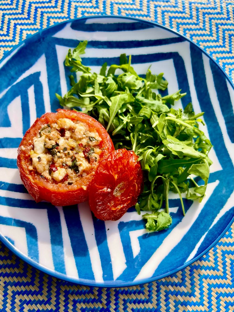 I love stuffing vegetables, whether its peppers, courgettes and such like. When I was shopping there were these beautiful juicy tomatoes and I had some feta knocking around in the fridge so bought them. They were delicious. You get the sweetness from the tomato,