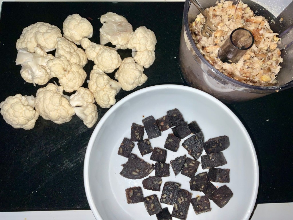 This is my go to comfort dinner, I love cauliflower cheese and treat as a meal on its own tho I do like a gammon steak with it sometimes to. I pimped it up by adding some black pudding and some chestnuts and sage to the breadcrumbs. Its just so tasty! If you don’t like black pudding you could add some cooked sausage or bacon.