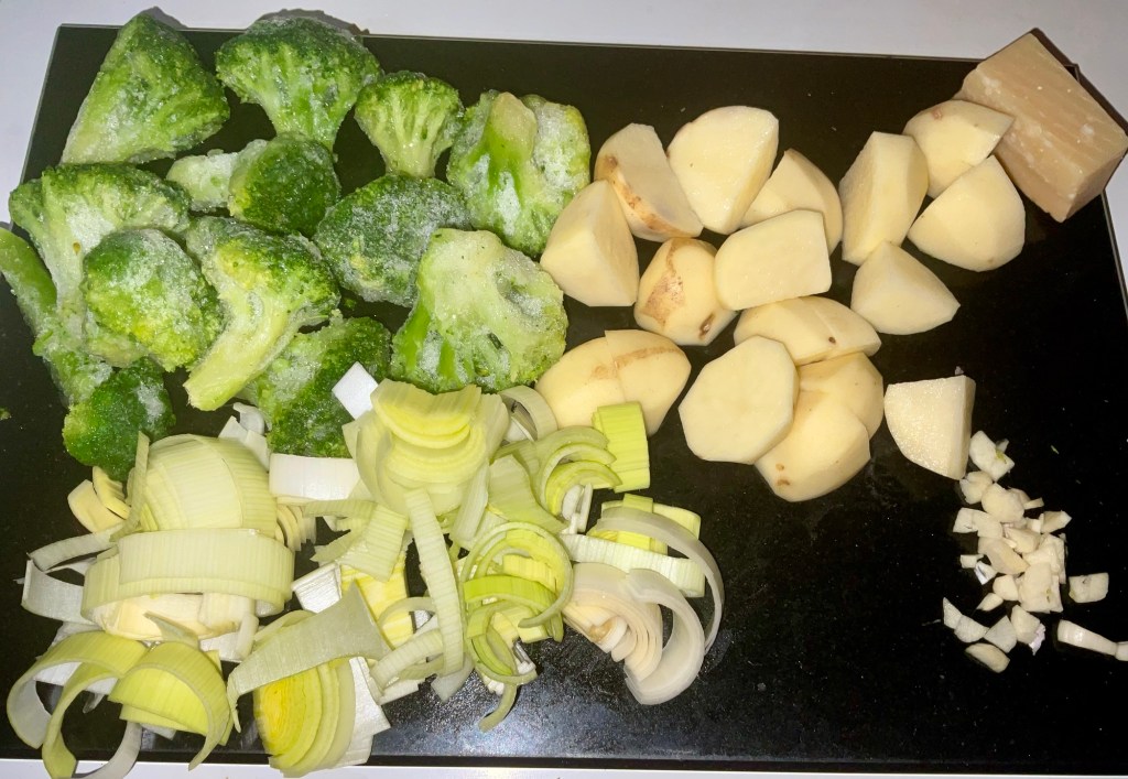 This is a simple but really comforting dish. As it has 3 vegetables I find a large bowl with some yummy crusty bread is enough for me dinner. I always save my parmesan rinds in the fridge and chuck them any soups I make. I used frozen broccoli just to see how it turns out. It worked perfectly.