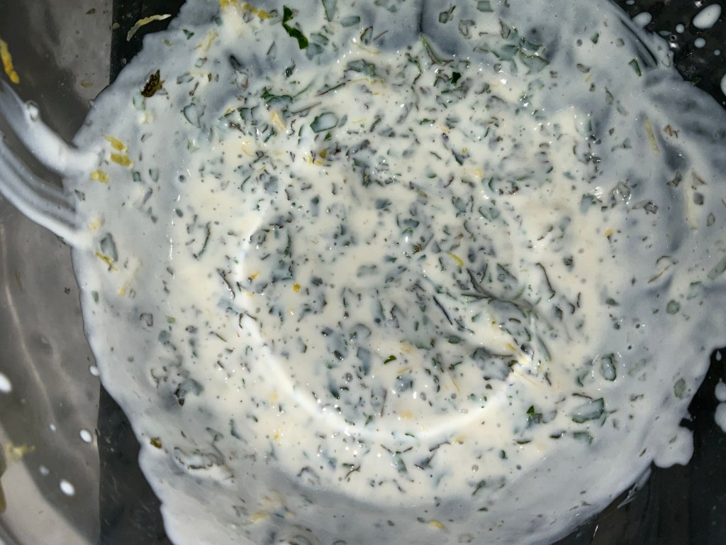 - Make the yoghurt dressing by adding all of the ingredients into a bowl, give it a stir to combine.
