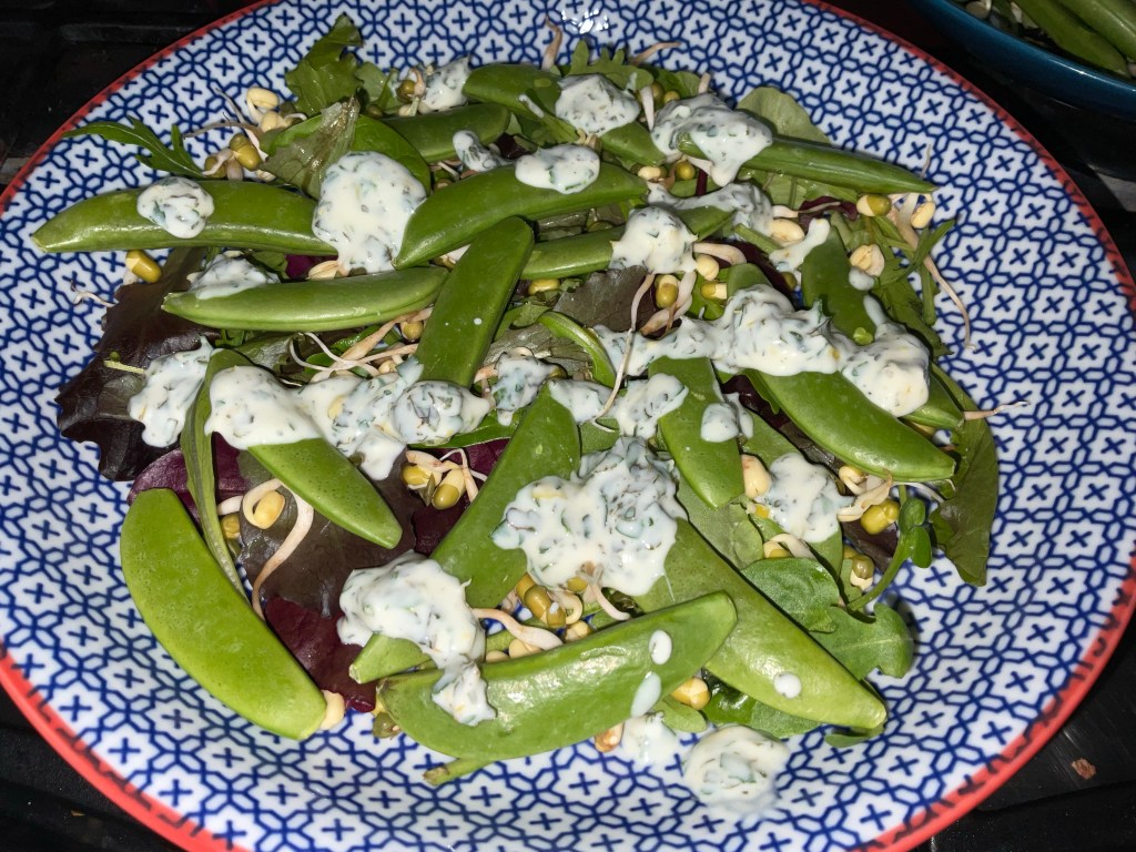 Sometimes I really fancy something healthy just like when I have a craving for junk food. I had a pack of sugar snap peas that I forgot to add to a stir fry so I thought id put them in a salad. They were delicious crunchy, sweet and fresh. I also had ½ red pepper left so I just chucked it in the air fryer it turned out really good. Everything worked so well together in flavour and texture.