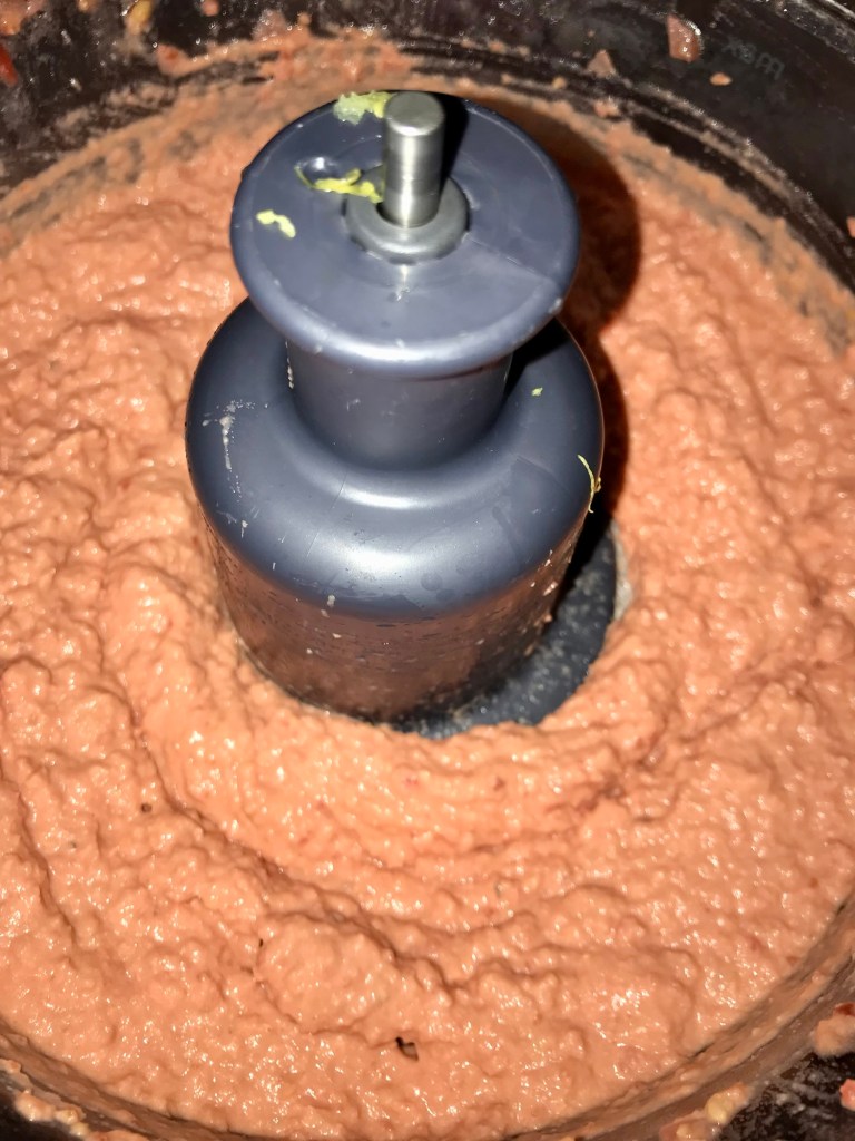 - In a food processor or blender add all of the ingredients (only 2 tbsp of the olive oil) and blitz until smooth.
