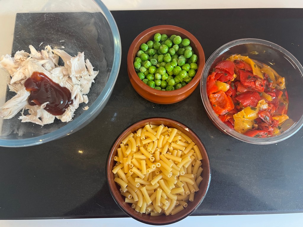 I do love a chicken roast dinner I probably have it more than other meats as it is cheap, reliable, easy to make and all sides go with it perfectly even Yorkshire pudding! I usually make a chicken stock with the carcass chucking in any vegetables I have knocking around. I also love going down the Asian stock route too using aromatics. I still always have some leftover chicken meat left though that I want to use to make a 2nd meal with, so I’m really making the most of the whole chicken. I knocked this together as I wanted a really quick dinner. I decided to add the bbq sauce for a change and I loved it! This is tasty quick, cheap and uses staples in the kitchen already, so perfect for a quick meal if you need to whip something up.